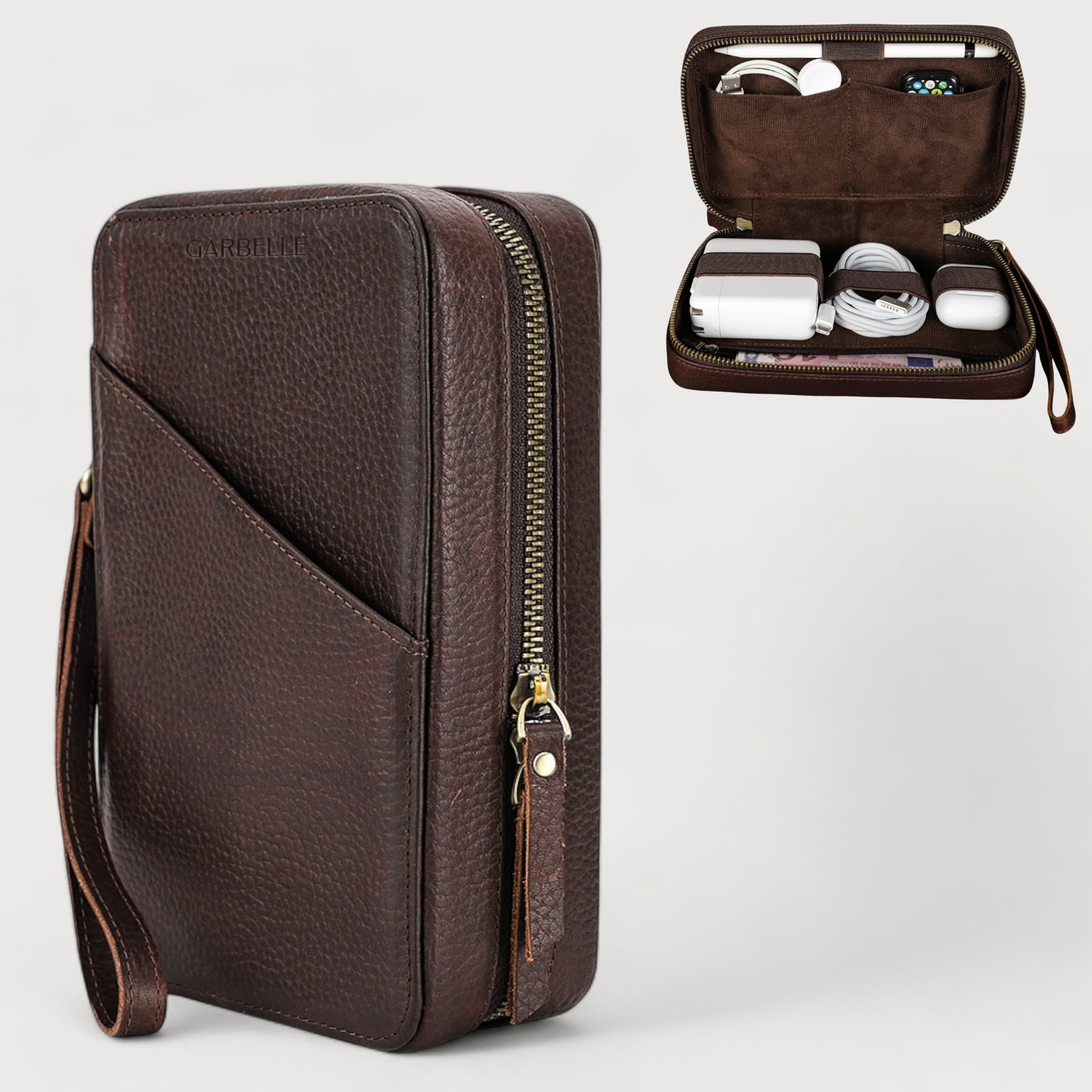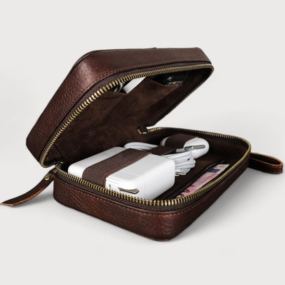 Le Gavaro Case est un étui de rangement conçu pour protéger et organiser les accessoires essentiels du quotidien. Pensé pour les voyageurs connectés, il permet de transporter chargeurs, écouteurs, câbles et petits objets avec ordre et élégance. Son design structuré et compact s’intègre parfaitement dans un sac Gavaro, tout en offrant une protection fiable.